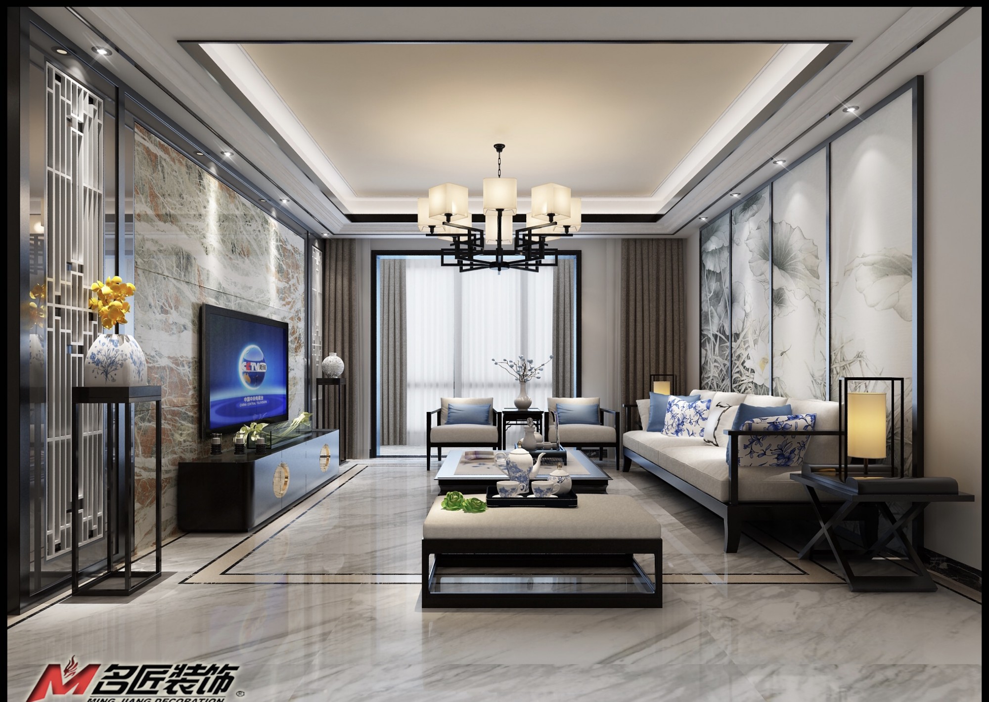 佛山同济广场四居新中式风格装修效果图