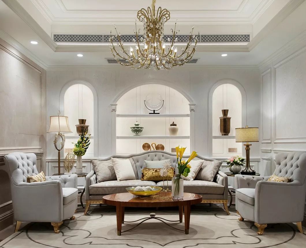 别墅客厅装修设计,华丽的客厅,对欧式元素进行了精炼,典雅中带有一些小清新的感觉